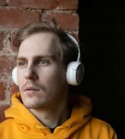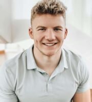 Sunlight streams through overhead beams, casting shadows on a wall featuring a prominent sign with bold red letters stating 'GOOD BUSINESS'. The environment appears to be indoors with modern architectural elements and minimalistic decor. Potted plants and furniture create a relaxed, professional atmosphere.